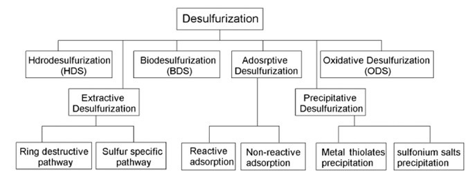 روش­هاي گوگردزدايي را نيز مي­توان به دو گروه دسته‌بندی کرد: “مبتني بر هیدروژنی” و “غير هیدروژنی”.